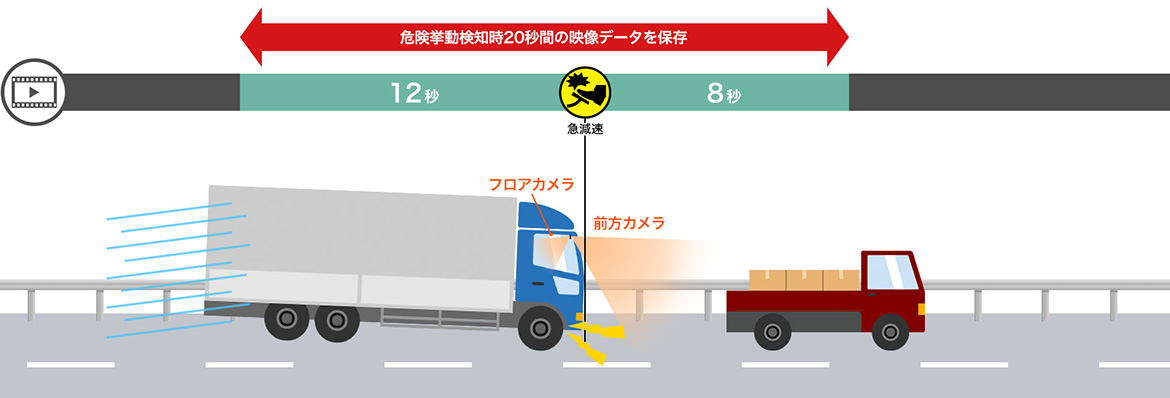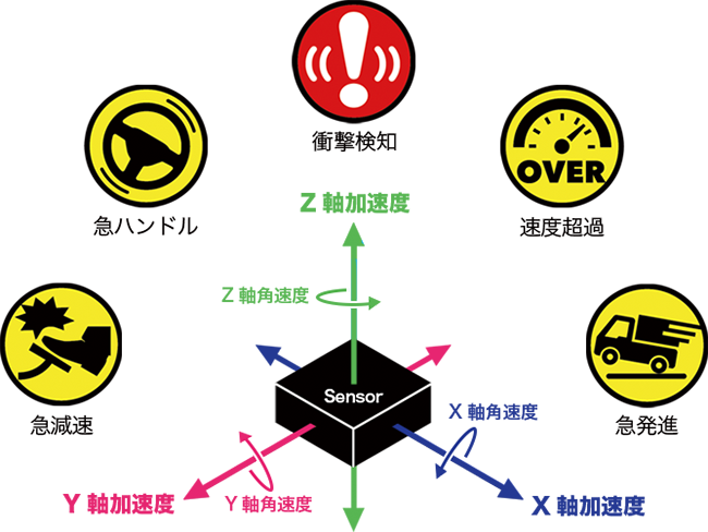 3軸加速度センサーと車速パルスによる正確な速度で危険挙動を検知。さらに、遠隔操作での映像取得も可能です。