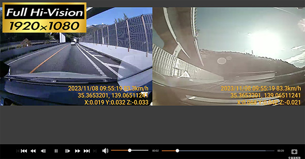 前方カメラはQuad HDの高画質に対応しているためクリアな映像が確認可能、赤外線カメラ対応の車室内のほか、バックカメラも確認可能な最大3カメラ対応モデルです。